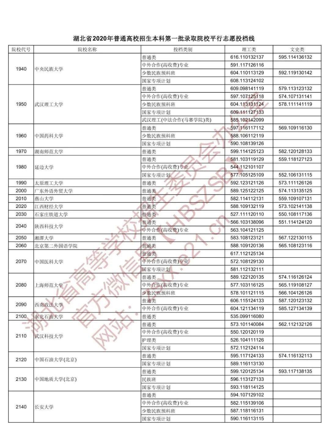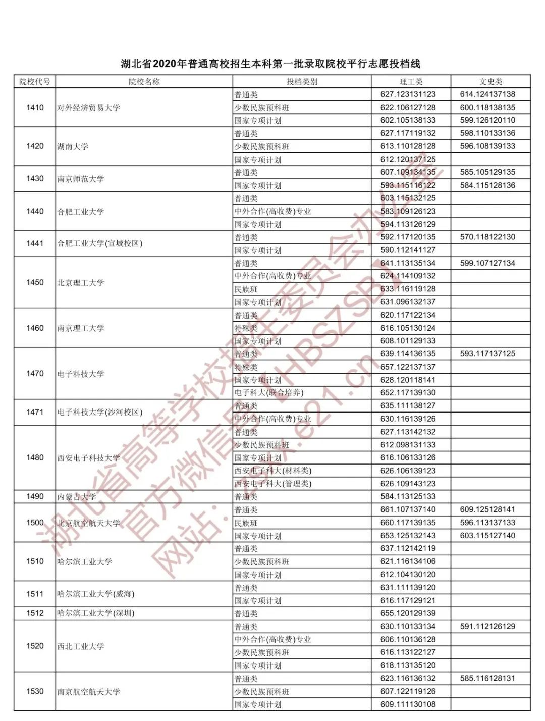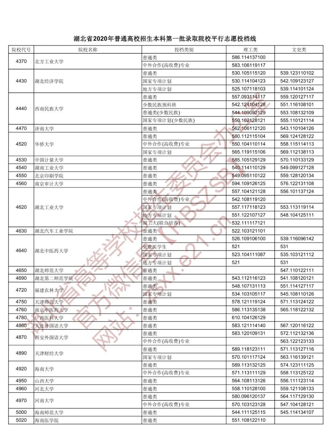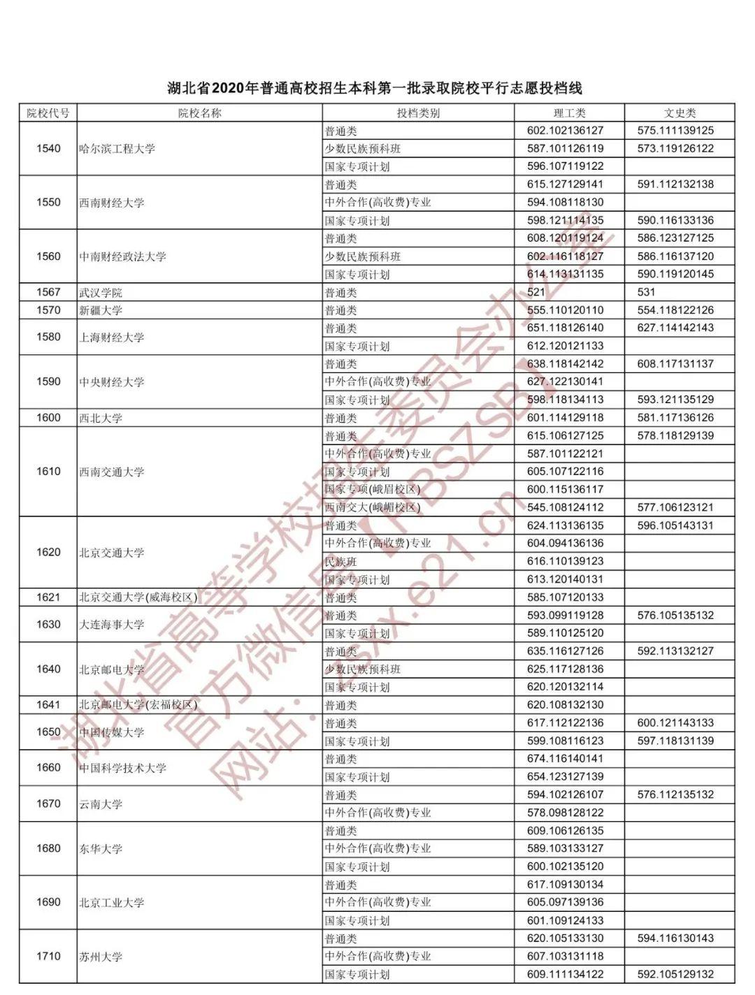 湖北省招办权威发布 湖北省2020年普通高校招生本科 第一批录取院校平行志愿投档线 北大理工687、文史644 清华理工687、文史650 武大理工641、文史612 华科理工644、文史601 编辑:苏浩伟 责编:钱思雪 审核:陈凡 鲁京京