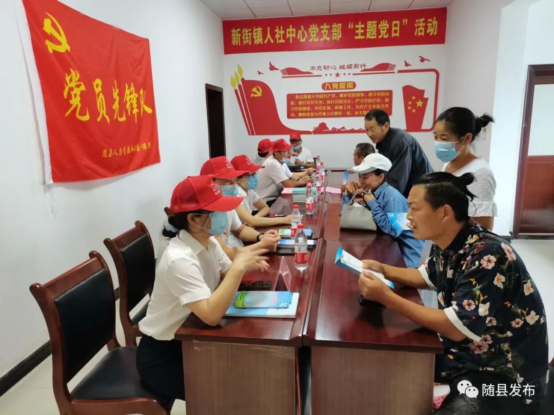 近日,随县人社局7名党员业务骨干组成党员先锋队来到新街镇人社服务中心大厅,通过摆放宣传展板、发放宣传资料、解答群众咨询等形式,宣传各项人社惠民政策,面对面为群众答疑解惑,并现场代办人社服务业务。