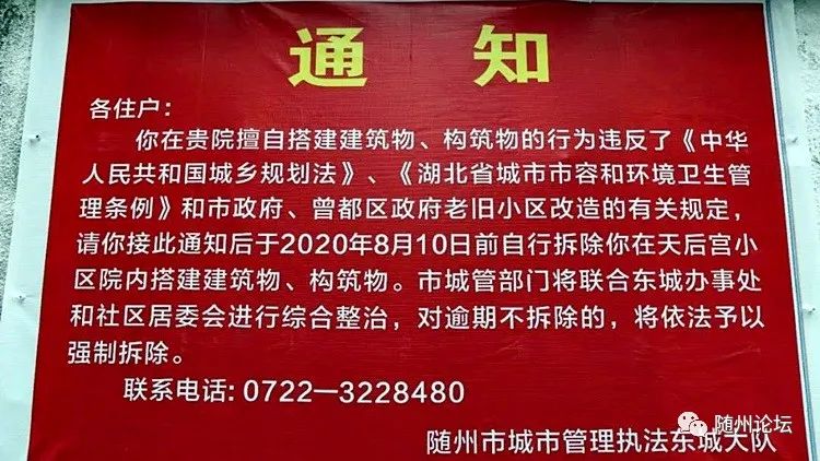 8月19日至20日,随州市城管执法委所属东城大队、西城大队、规划大队积极协助东城办事处、西城办事处和相关社区,出动80余名执法管理人员,动用挖机等大型机械设备,依法对东城天后宫小区、西城沿河小区等公共区域内的130余间违建库房、棚亭和储物间进行集中拆除,拆除面积近2000平方米。