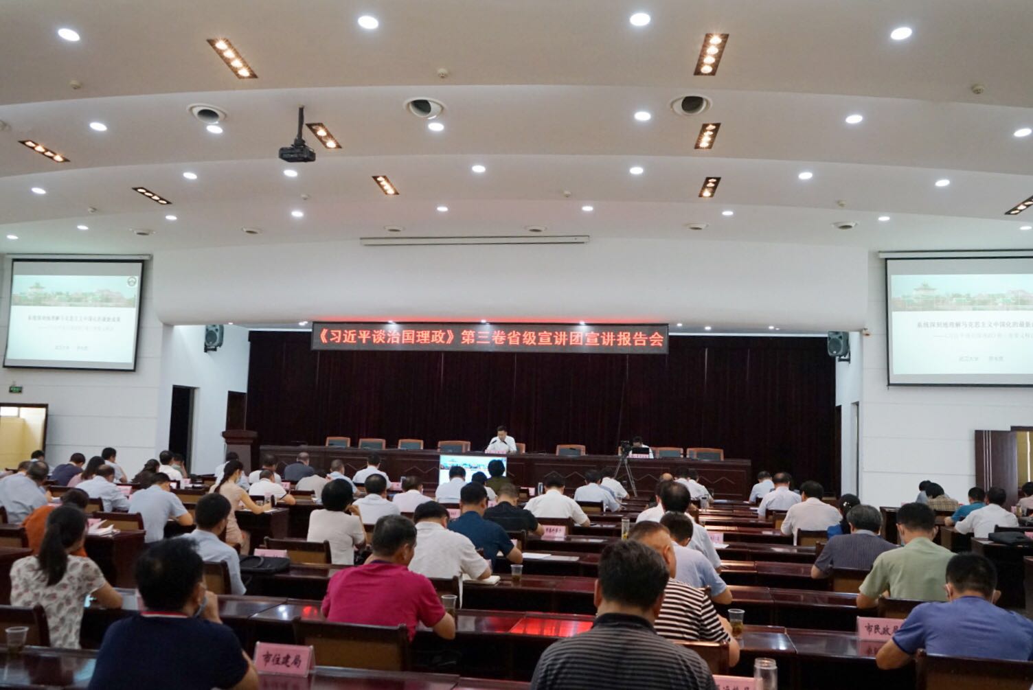 8月24日,《习近平谈治国理政》第三卷省级宣讲团宣讲报告会在我市举行。省级宣讲团成员、武汉大学马克思主义学院副院长罗永宽教授作宣讲辅导报告。