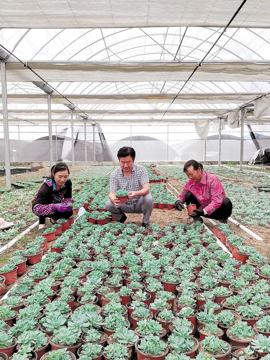 泉水村第一书记郝旭东介绍,该村先后引进传奇园艺、禾禾苗木等5家规模种养企业入驻,发展多肉植物、花卉苗木、莲虾共作等产业,成功带动120多名村民在家就业,其中一半是贫困户,每年务工收入达150多万元。