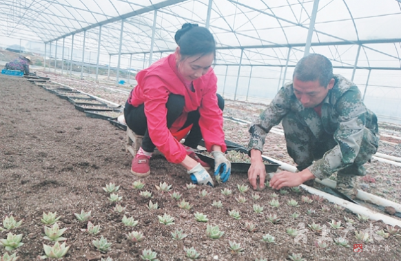“每月工资2600元,一年下来收入3万多。”8月24日,广水市长岭镇泉水村多肉植物种植基地里,忙着给多肉植物培土的贫困户郭家芝说。