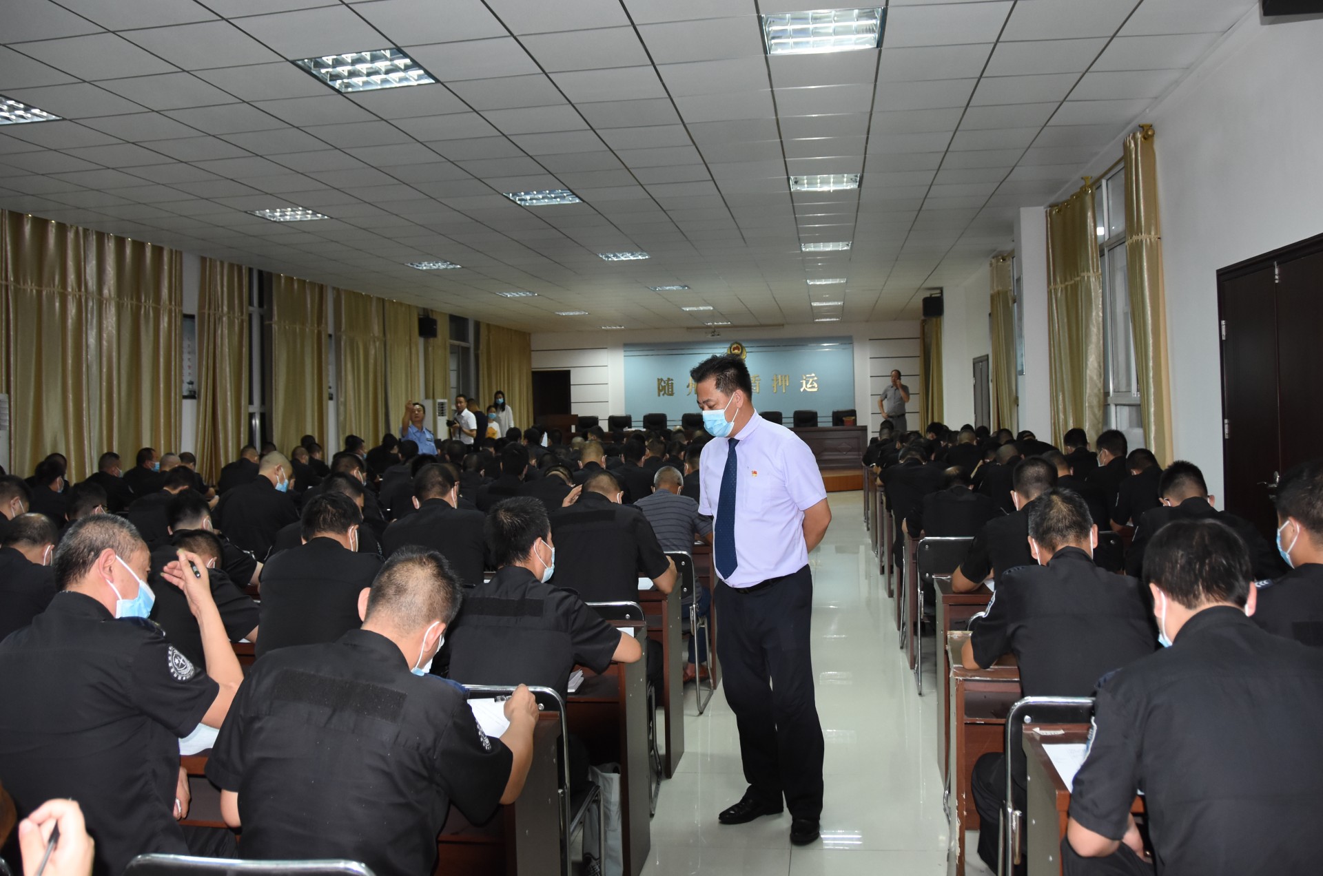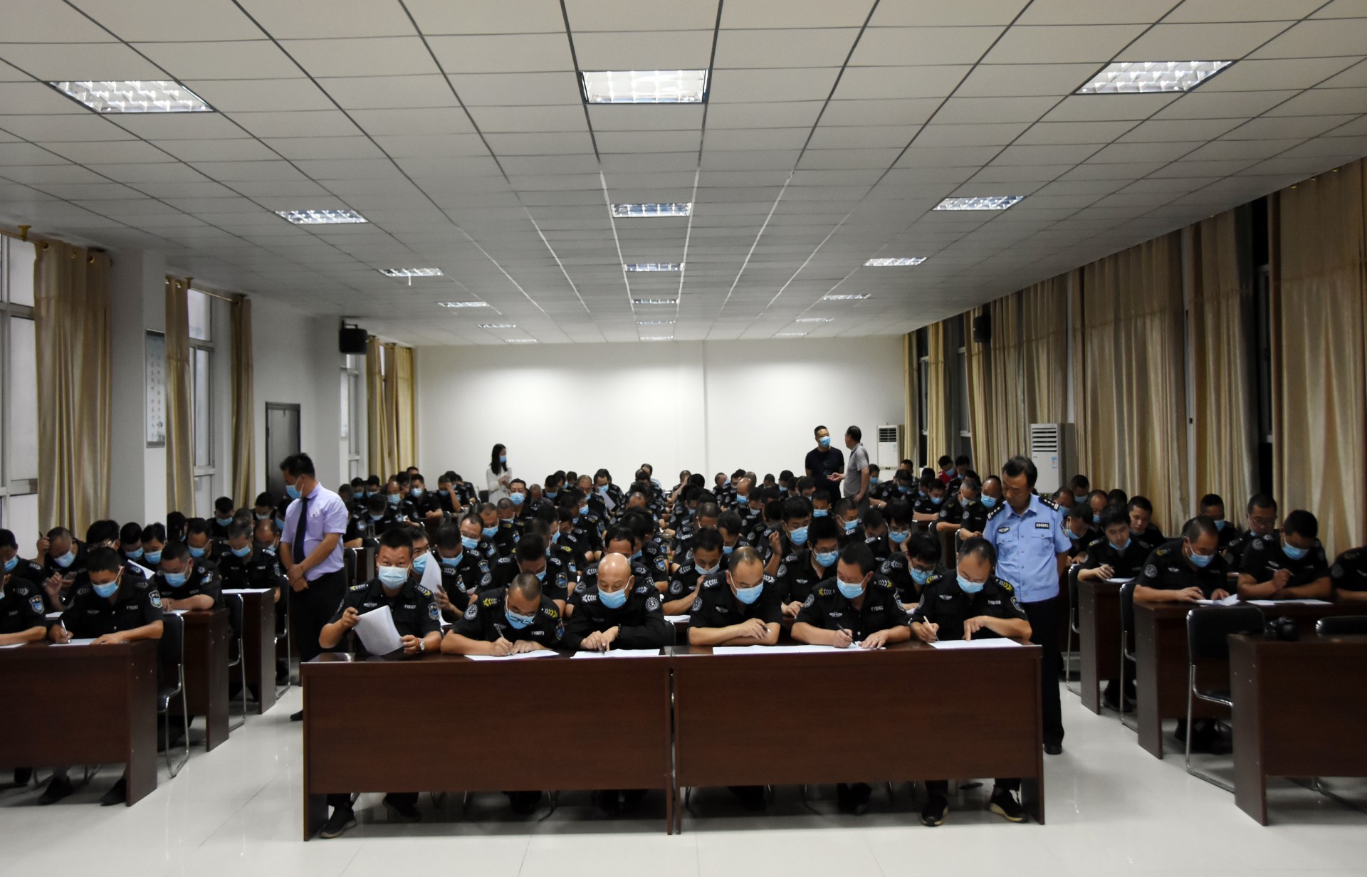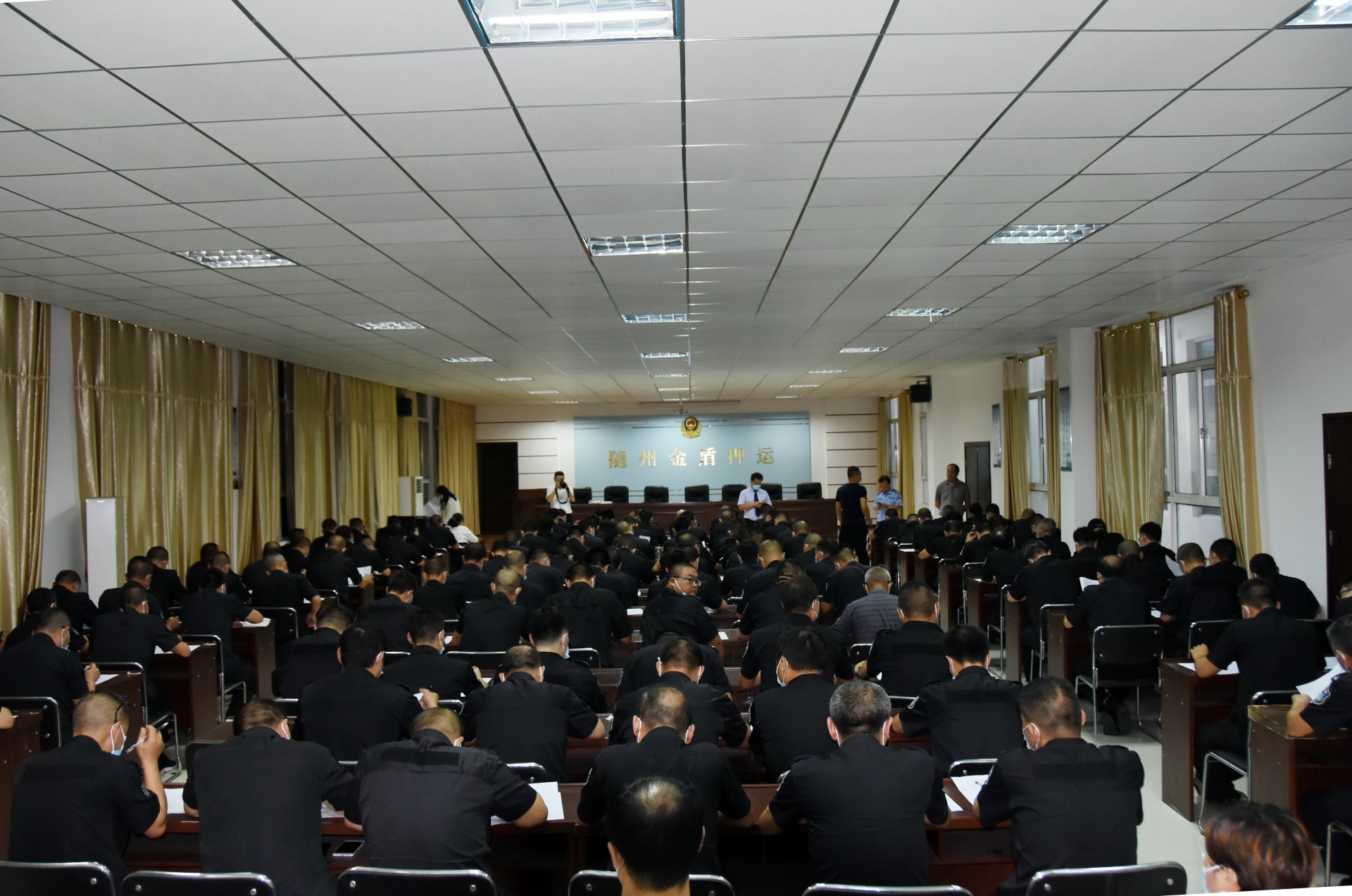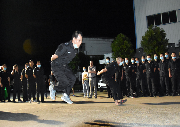 本次活动,公司注重实用性与实战性相结合,理论学习和测试贴近实际工作为要求,制定了周密的实施方案,公司领导全程现场监督。在时间紧、内容多、要求高,不耽误正常工作的情况下,利用下班休息、晚上时间全面展开。公司特从武汉聘请了3名具有专业培训资质的省保安协会特约讲师授课,并按照公安内保部门要求,在市公安局内保支队领导的指导下,先后对公司150多名员工,开展了理论知识培训、业务理论考试和体能训练、体能测试等项目。理论学习由公司领导及特约讲师担任主讲,对武装押运、保安岗位职责,安全保卫制度、风险排查、保安日常工作及工作礼仪、突发事件应急处理等分别进行了讲解培训,并进行了理论知识闭卷考试。开展了体能培训和俯卧撑、跑步、蛙跳等体能测试。参训员工们虽然个个汗流浃背,但各项项目一丝不苟、动作到位、队伍整齐,得到省保安协会特约讲师和市公安局内保支队领导的好评。