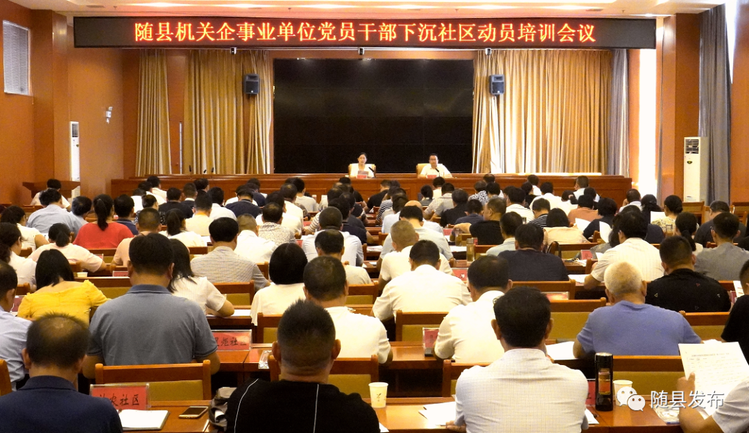 8月27日,随县召开机关企事业单位党员干部下沉社区动员培训会议,动员部署机关企事业单位党员干部下沉社区工作,真正做到沉下去、下得去、干起来、管得好,推动资源力量下沉、促进治理能力提升,确保下沉社区工作落地见效,并形成常态化、长效化、制度化。