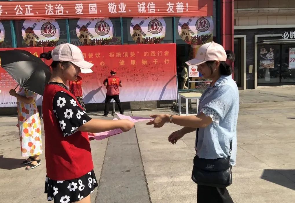 8月27日,西城街道新时代文明实践所组织百名志愿者在大润发广场开展“公筷公勺 健康生活 文明餐饮 拒绝浪费”宣传活动。呼吁广大市民养成文明生活习惯,厉行节约,珍惜粮食,拒绝“舌尖上的浪费”。