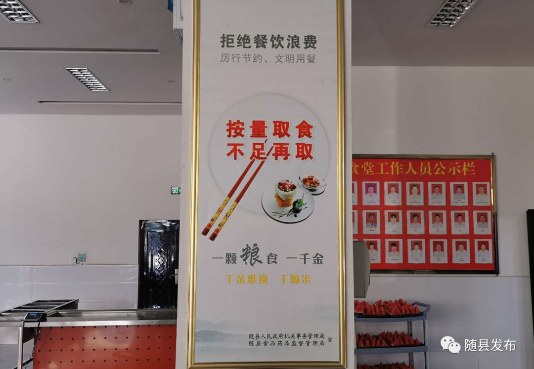 “拒绝浪费,珍惜粮食”“按量取食,不足再取”“不剩饭、不剩菜、文明用餐、节俭养德”……在随县政府机关食堂的醒目位置,处处可见“倡导文明就餐、杜绝餐饮浪费”的温馨提醒。8月27日12时许,就餐人员先后来到食堂,大家都有序排队、按量取餐。在打餐前,工作人员也会提醒大家,遵循“吃多少打多少”的原则,不够再自行添加。