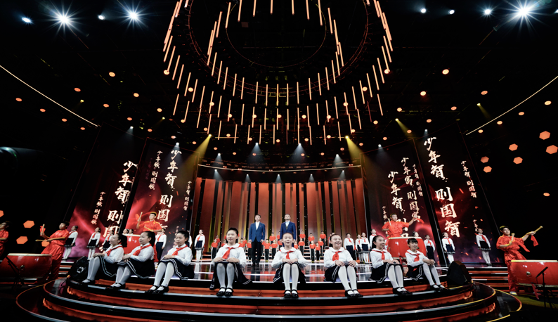 洪山体育馆《开学第一课》武汉录制现场。武汉课堂选址在曾经的武昌方舱医院,节目从全民抗疫的角度,讲述湖北及武汉医护人员以及各行各业的代表在这次抗疫中的英雄事迹,并通过“云连线”的方式让全国多地的中小学生参与了课堂互动。