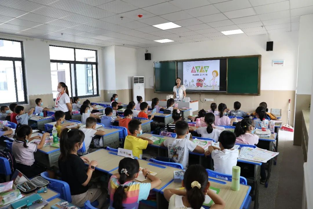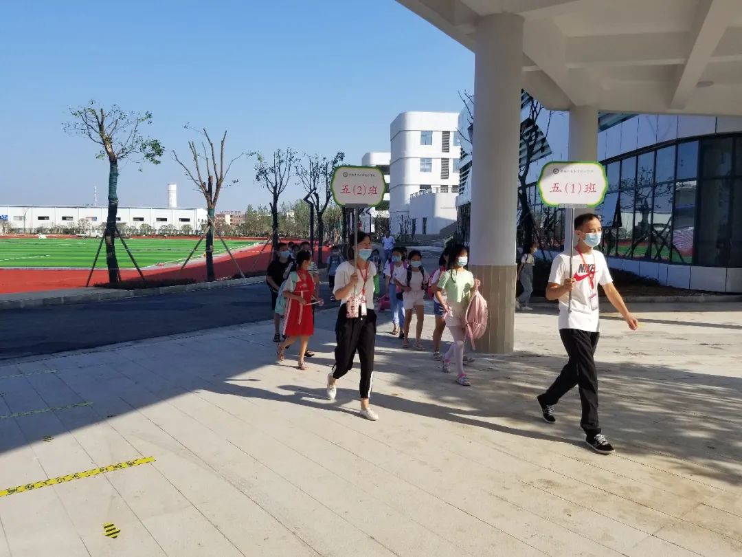 老师们带着各班学生熟悉教室路线