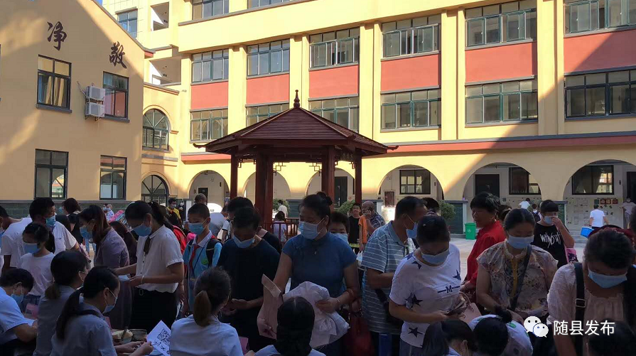 9月1日,随县神农国际学校有序组织学生领课本、分班级、换宿舍,部分年级已经正式上课。