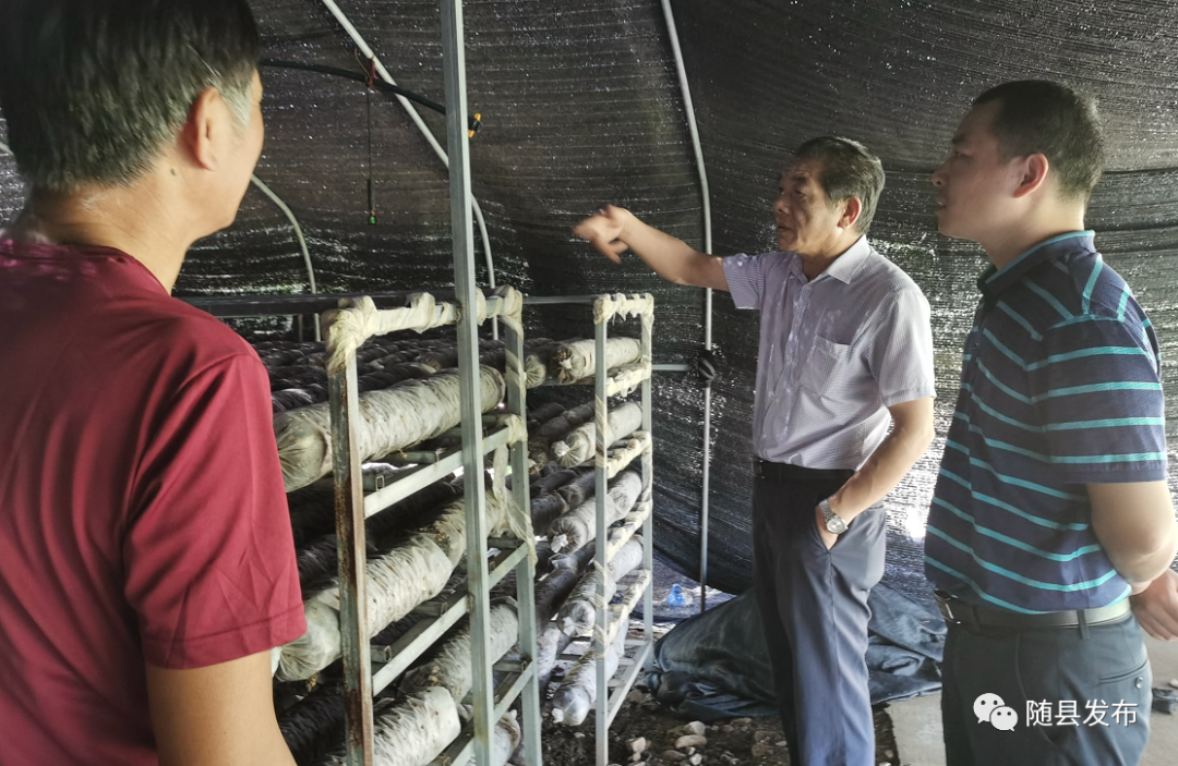 9月1日上午,随县人大常委会副主任雷震到高城镇高黄村香菇基地调研香菇基地的产业结构和生产、销售情况,并对村级香菇产业的发展提出指导性意见。(张玉国)