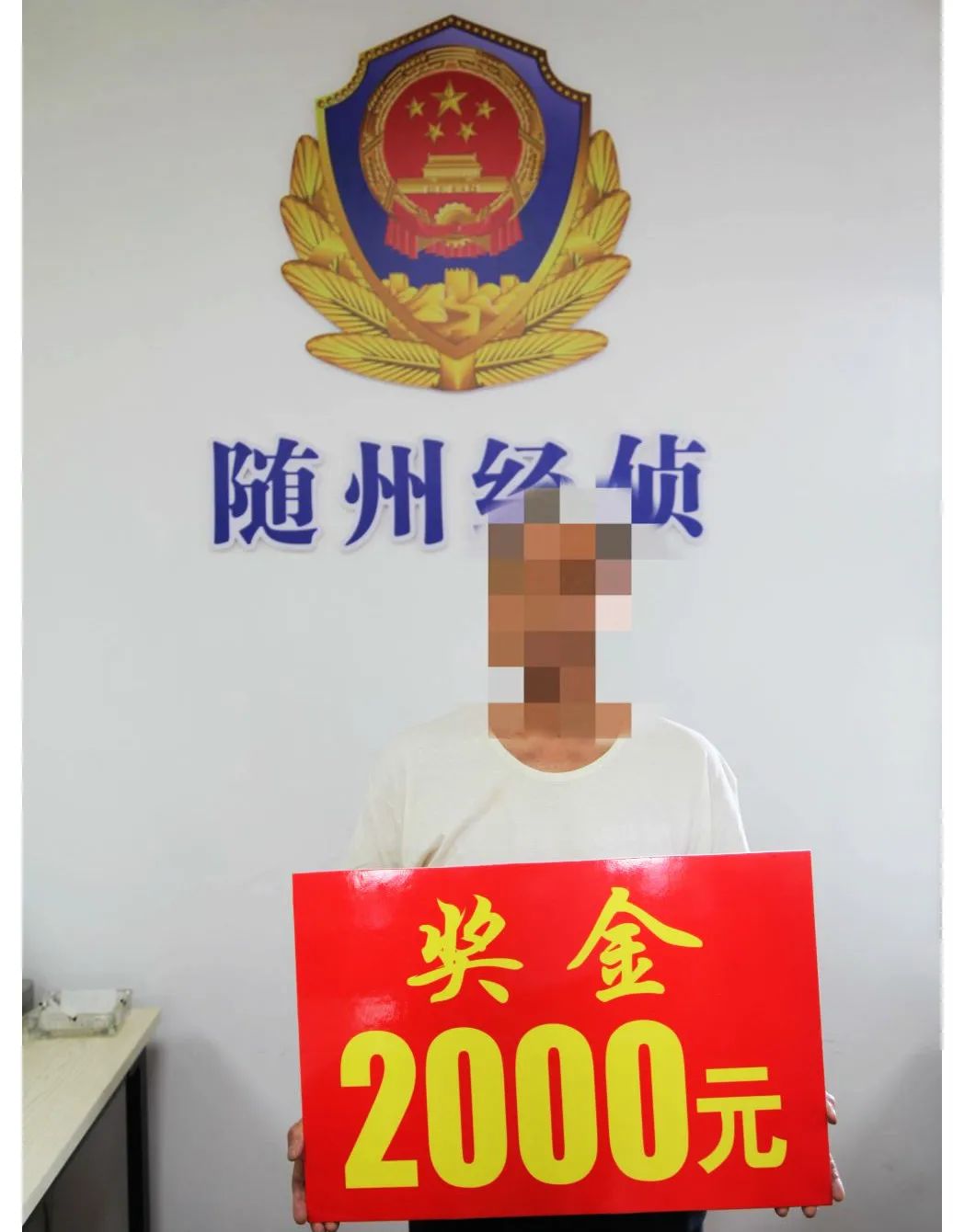 近日,随州市公安局对一名提供线索举报人现场兑现奖金2000元。