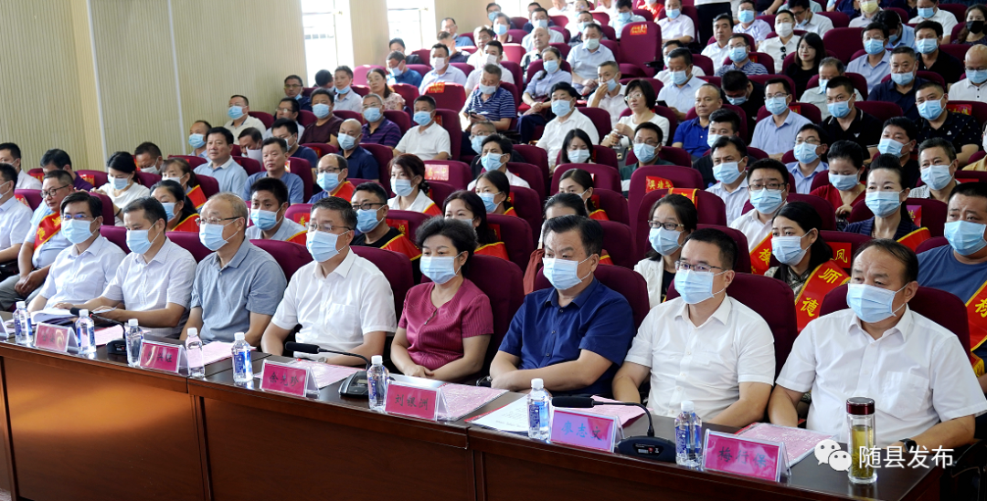 随县县委书记、县长陈兴旺,县人大常委会主任余先珍,县政协主席金安翔,县领导刘银洲、刘炳坤、廖志文、廖富国、梅行保参加了表彰大会。陈兴旺等县领导现场为10名“师德标兵”和10名“模范班主任”颁发了获奖证书,并送上了鲜花。