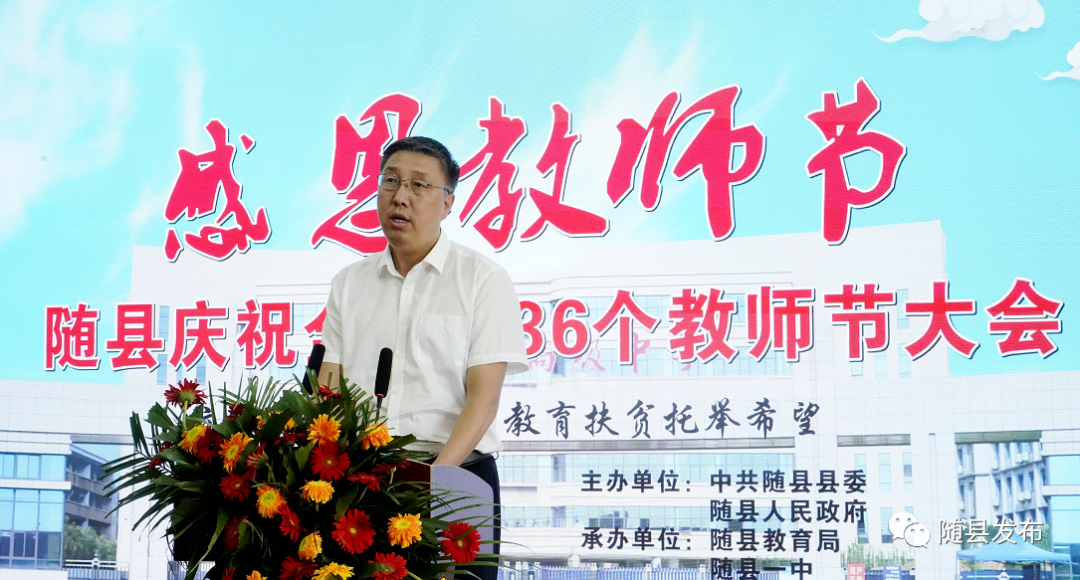 陈兴旺代表县“四大家”领导向全县广大教师和教育工作者致以诚挚的问候,向受到各级表彰的先进集体和先进个人表示热烈地祝贺。陈兴旺说,这些成绩的取得,是县委、县政府重视教育、发展教育的结果,是社会各界高度关注、大力支持的结果,更是广大教育工作者默默耕耘、无私奉献的结果。特别是今天受到表彰的先进集体和先进个人,正因为有你们潜心教书、精心育人的崇高信念,不计名利、甘为人梯的奉献精神,学为人师、行为世范的崇高境界,才托起了随县教育事业蓬勃发展的今天,也必将撑起随县发展更加辉煌的明天。县委、县政府和全县百万人民,对广大教师的艰辛付出由衷敬佩,深深感谢,你们辛苦了。