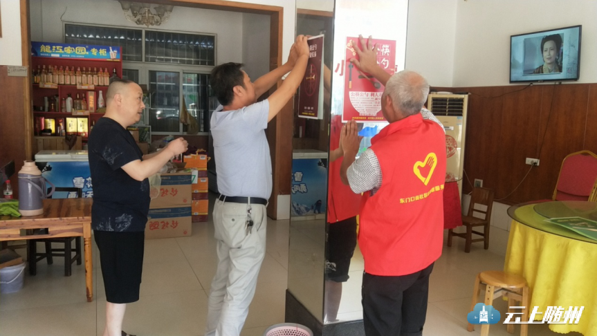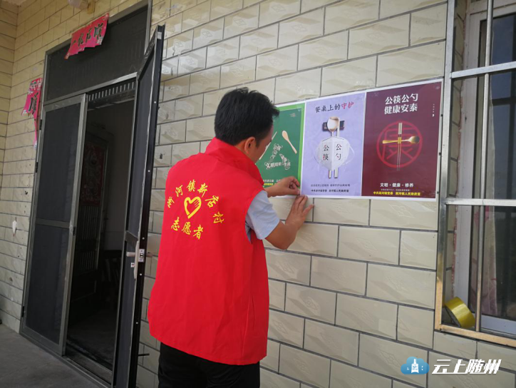 新店村志愿者张贴公筷公勺公益广告