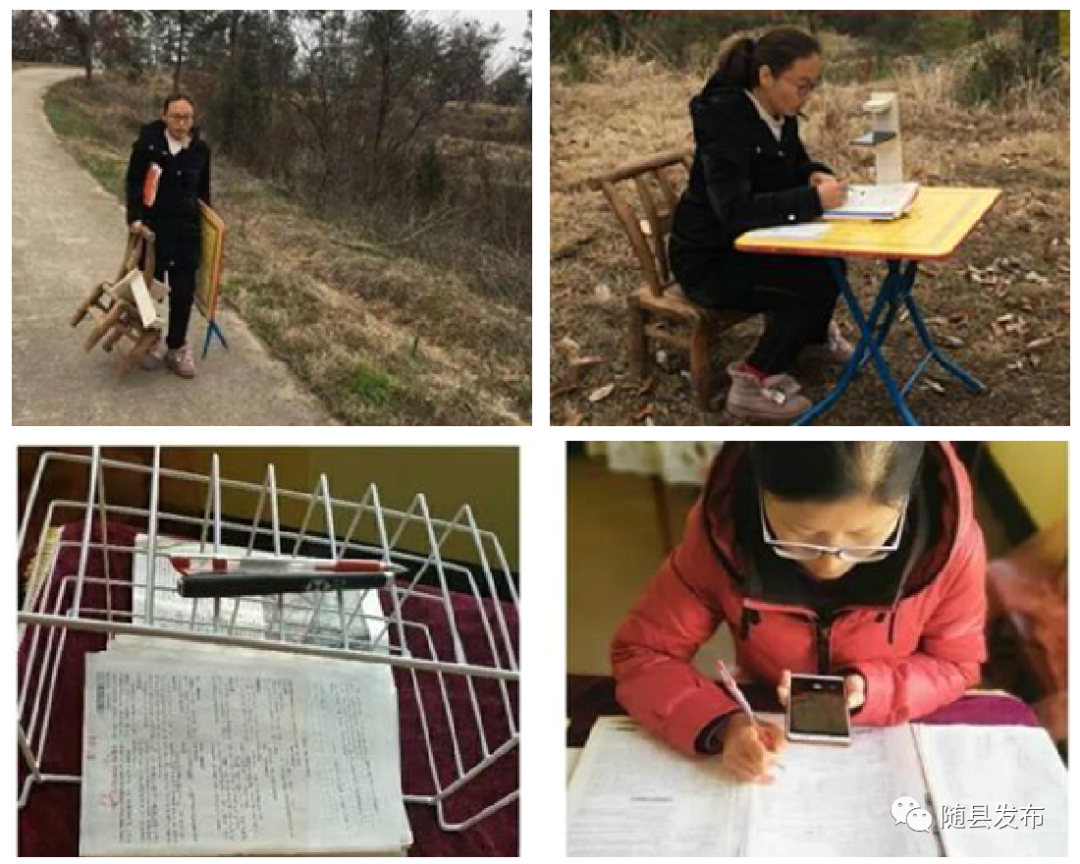 我们班有四位老师被困在偏远山区,网络信号差,为了保证他们网络教学的效果,我们“打一枪换一个地方”,到平房屋顶,开阔的院子里,山包上,看风向,识天气,调wifi,哪里网络信号好,哪里就有我们的身影,不管身在何处,决不让一节课“流产”。为了信号好一点,上好一节网课,自己制造手机支架,带着凳子、电脑在泥泞的山路上,深一脚、浅一脚地跋涉到山顶,不小心滑倒,摔得青一块、紫一块更是常有的事儿,当看到孩子们在网络那端露出心领神会的笑容时,我们觉得一切都是值得的。为提升网课效果,我们在野外寻找各种植物、昆虫,开发了别具一格的“生物课”,凭借富有特色的地形、地貌、岩石,研发了独出心裁的“地理课”,挖掘当地的人文景观和历史典故,主播了别开生面的“历史课”,我们以此实现了独具魅力的备考资源整合。