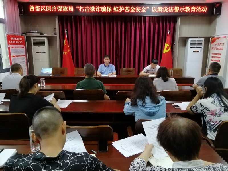 9月15日上午,为提升医保基金监管水平,切实维护基金安全,曾都区医疗保障局党组书记、局长袁振国主持召开“打击欺诈骗保 维护基金安全”以案说法警示教育活动。