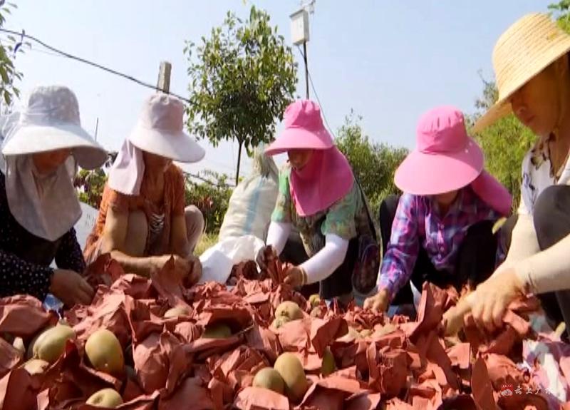 【同期声】 广水市红阳种养殖农民专业合作社负责人 陈莉:(猕猴桃)从开花以后结果,果子太多要疏果,果疏了以后再套袋,幼果的时候就要套个袋子上去,我们这个地方风害比较大,为了保证这个果子的品质,采摘下来再撕袋子,再分果分等级。