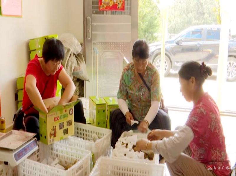【同期声】十里街道办事处快活岭村村民 袁北清:原先家里很困难,自从办了合作社,我在这做事家里改善了很多,在这做事我很满意,一天80块钱,我这么大年纪了能干什么呢,在这家里能照顾又能赚点钱。