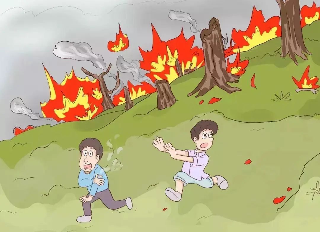 如果被大火包围在半山腰时,要快速向山下跑,切忌往山上跑,通常火势向上蔓延的速度要比人跑快得多,火头会跑到你的前面。