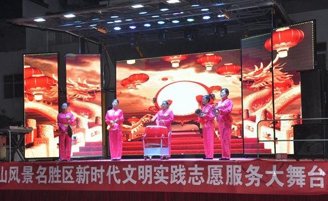 志愿服务,文化先行。为推动景区文明实践活动规范化、常态化开展,此次的文化志愿服务大舞台活动的开展,景区宣传文化部门既作为活动的组织者,同时作为参与活动的志愿者,旨在将景区非遗文化、旅游宣传、政策宣讲等统筹起来,着力为基层群众送文化,打造群众所需、特色鲜明、高质量的文艺惠民活动,达到以文化人的目的。同时号召全区干群积极参与到志愿服务活动中来,让新时代文明实践活动遍地开花。据了解,首场演出后,活动还将持续走进全区各村、核心景区等地。