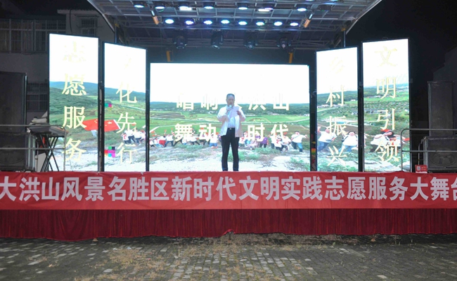 景区党工委委员、管委会副主任杜丹在活动致辞中表示,大洪山新时代文明实践文化志愿服务大舞台的首场演出,标志着景区新时代文明实践组织建设、志愿服务活动迈上了一个新台阶。志愿服务,是新时代文明实践活动的重要组成部分,景区干群要树立"有困难找志愿者,有时间做志愿者"的理念,在新时代、新思想召唤下,团结一心,形成磅礴力量,把景区建设得更美好!他强调,景区新时代文明实践中心将坚持围绕基层宣传思想文化和精神文明建设,推动基层党组织履行好直接组织、宣传、凝聚、服务群众的重要职责,调动基层群众自我教育、自我提高的积极性和主动性,因地制宜地开展经常性、面对面、群众喜闻乐见的文明实践活动,培育和践行社会核心价值观,为建设品质景区、谱写新时代大洪山高质量发展新篇章提供强有力的精神动力。
