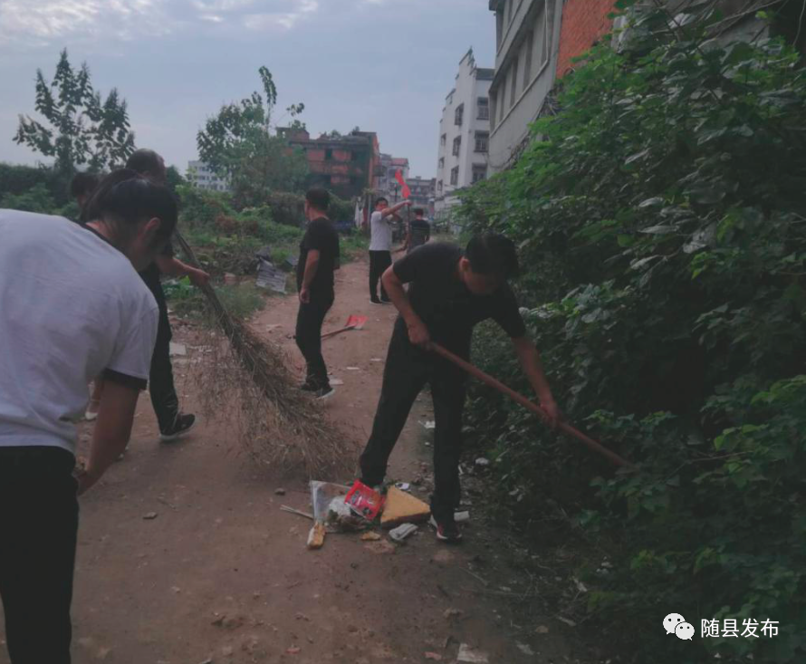 清理路面垃圾、清除路边杂草、整修道路路面……近日,随县厉山镇日中街社区吉祥街出现一群忙碌的身影,他们拿着扫帚、铁锹、镰刀,热火朝天地打扫周边环境卫生。这是县石材办党员干部下沉社区开展志愿服务活动的缩影。