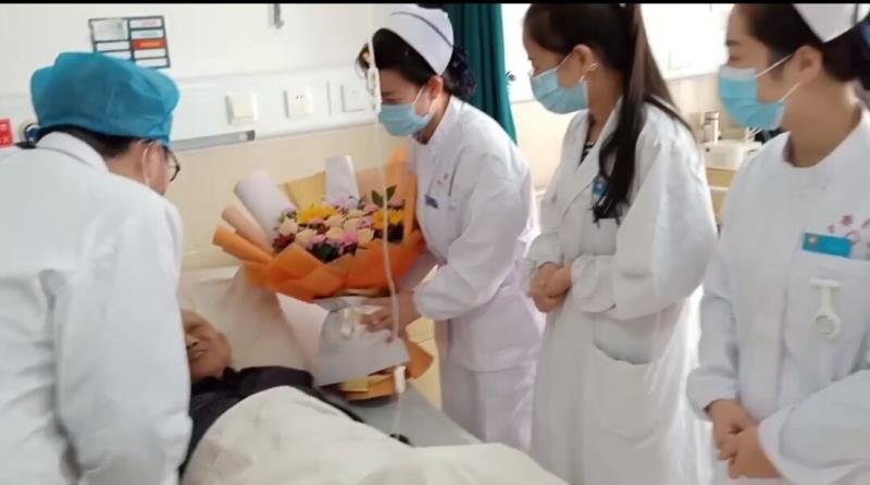 上午9点30分,科室医护人员将准备的鲜花与卡片送到了王爷爷手中。王爷爷见此脸上露出了许久未见的笑容。现场浓厚氛围和温馨场面如同家一般温暖。大家纷纷为王爷爷送上了祝福。祝王爷爷生日快乐,早日康复!