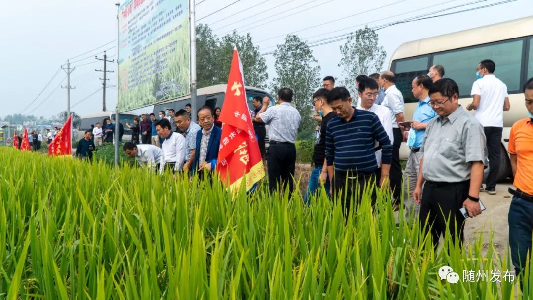 当天,与会代表首先观摩了曾都区何店镇三岔湖村“随州香稻”新品种试种筛选展示基地、随县安居镇肖店村“随州香稻”新品种筛选试验基地,曾都区北郊办事处新春村袁隆平院士指导的“杂交水稻超高产攻关示范”基地。