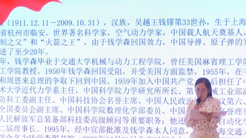 道德讲堂分为唱歌曲、看短片、诵经典、讲故事、谈感悟、送吉祥6个环节。在唱歌曲环节,全体干部职工起立共同高歌了《歌唱祖国》,表达了对祖国的深深爱恋;在看短片环节,观看了大型爱国励志短片《国家》,体会到爱国主义是我们民族精神的核心,是实现中华民族伟大复兴永不枯竭的精神动力;在诵经典环节,《满江红》中岳飞精忠报国的英雄之志,表现出一种浩然正气的忧国报国的壮志胸怀;在讲故事环节,聆听了“中国航天之父”钱学森冲破阻力毅然回国的故事;在谈感悟环节,徐娇、胡竞文、马微微同志用诗歌朗诵的形式,抒发了自己拳拳爱国之情;在送吉祥环节,送去了吉祥伞,预示祖国为我们遮风挡雨,我们同祖国风雨同行,共同面对。