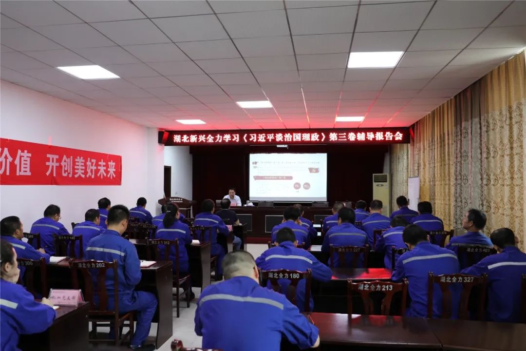 9月29日,湖北经济学院马克思主义学院基础教研室主任、副教授肖述剑到新兴全力机械有限公司作学习《习近平谈治国理政》第三卷辅导报告。