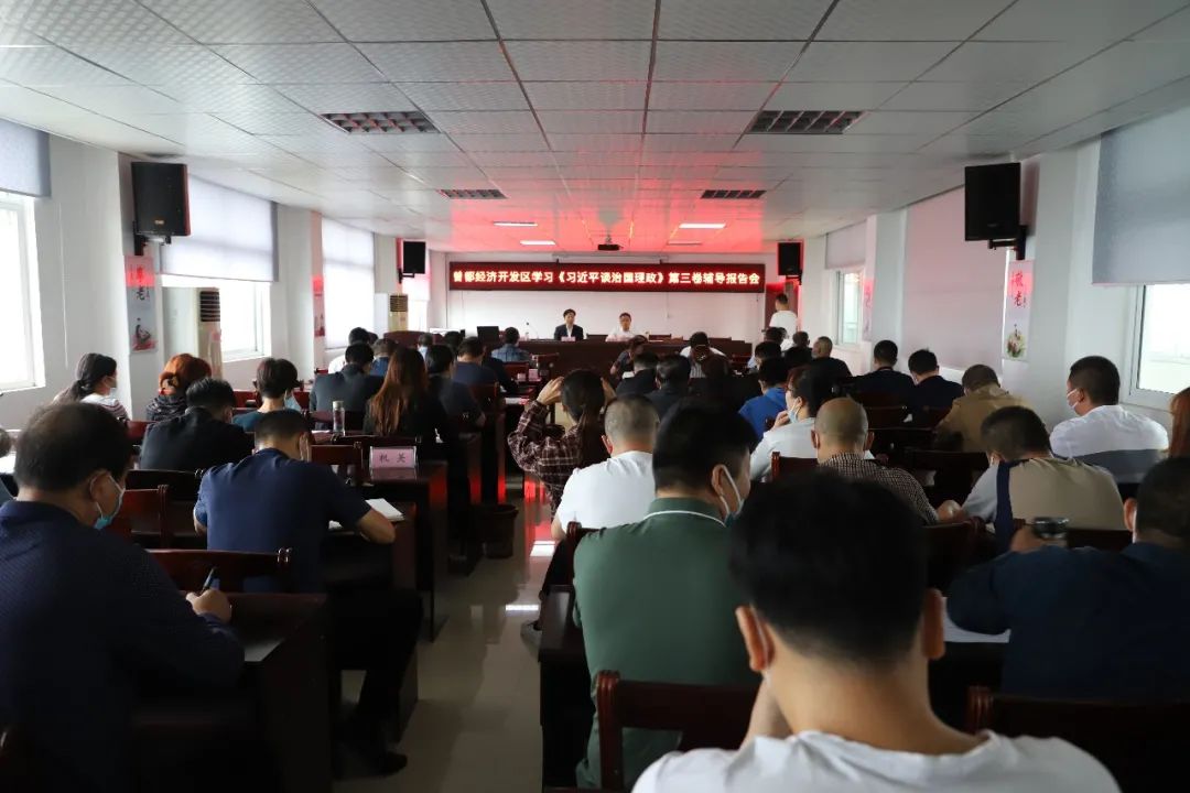 9月29日,湖北经济学院马克思主义学院副院长丁银河到曾都经济开发区作学习《习近平谈治国理政》第三卷辅导报告。