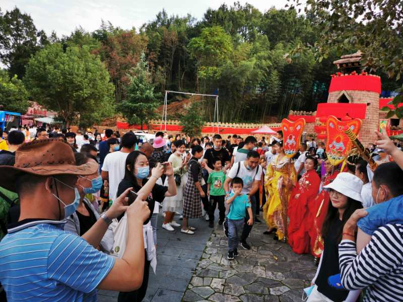 长假期间,炎帝故里景区精心烹制数道“文化大餐”,让广大游客共享民俗文化盛宴。10月1日,炎帝故里景区装扮一新,花团锦簇、彩旗招展、红灯高挂,一派喜庆景象,处处洋溢着浓厚的节日氛围。从炎帝故里景区南门进入,经过一条“姹紫嫣红”的油纸伞长廊,这条长廊以传统油纸伞吊顶造型为主,营造出古风古韵的视觉感受,引得游客纷纷驻足,拍照留念。