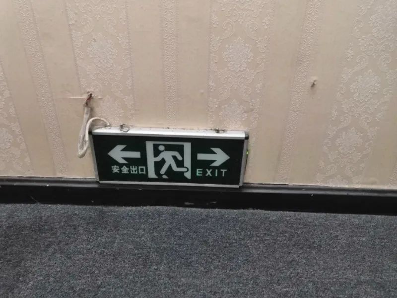 存在问题:1、部分电线未穿管保护;2、灭火器未保持完好有效;3、疏散指示标志损坏。