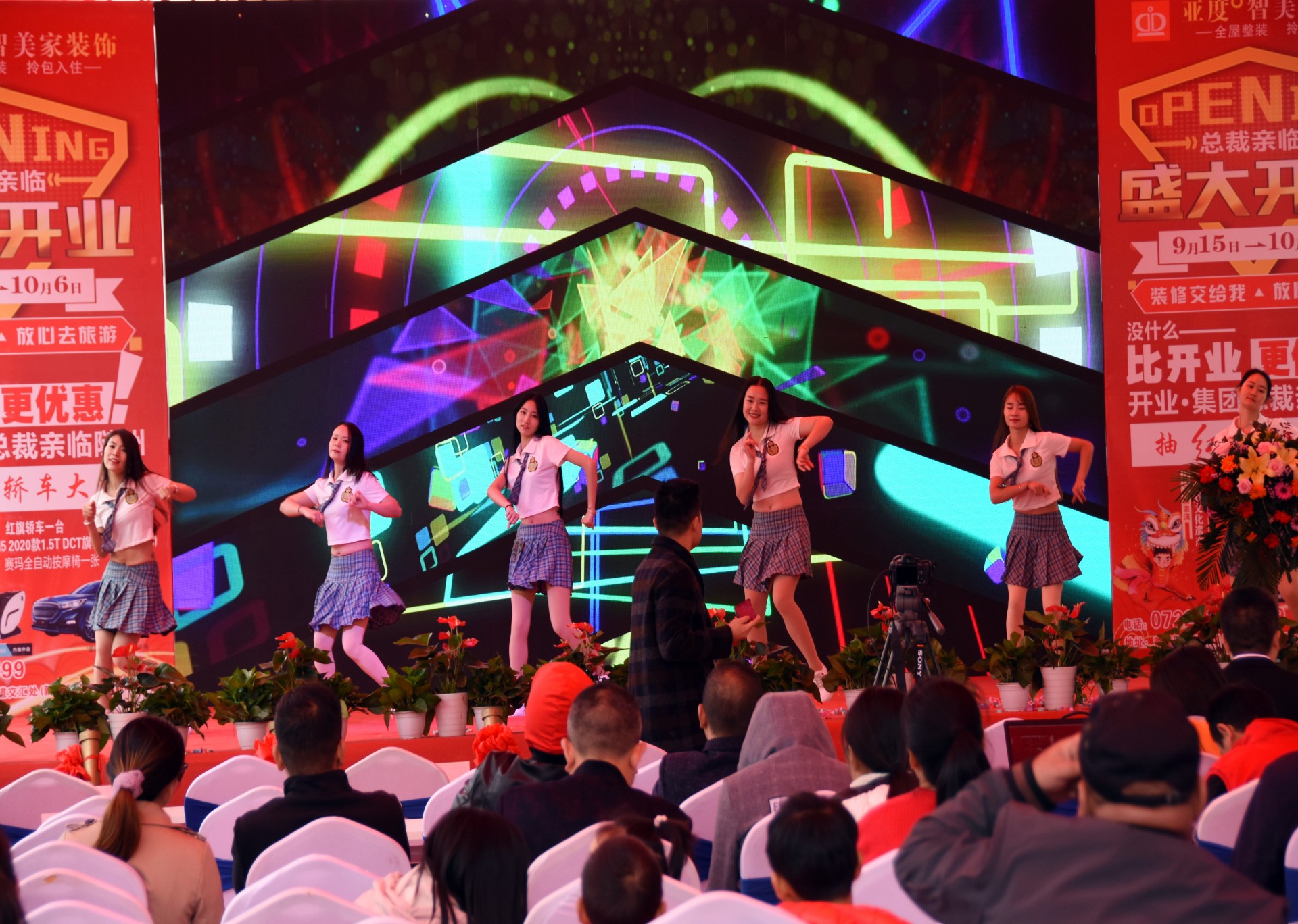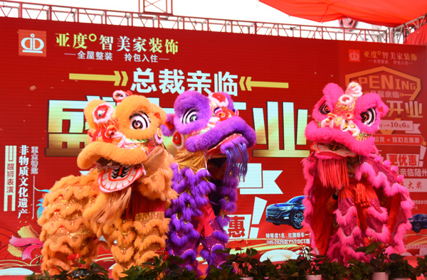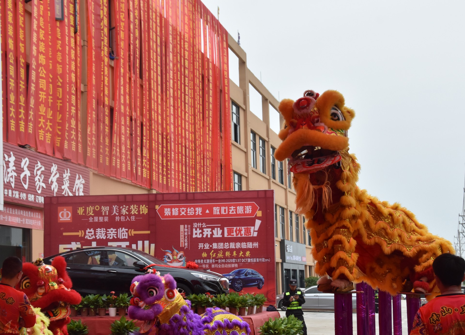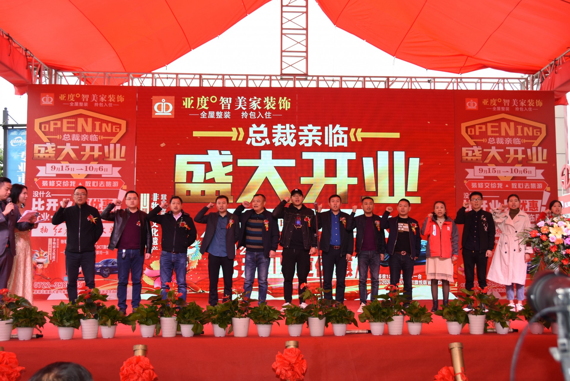 当日,亚度智美家装饰随州旗舰店张灯结彩,锣鼓喧天,歌乐阵阵、热闹非凡。上午9时18分,开业仪式拉开帷幕,在精彩的传统狮舞、开心锣鼓文艺节目表演后,亚度集团董事长杜卫东、随州市建材行业会长刘建先后讲话;随后,亚度智美家装饰随州旗舰店总经理黄亮明致辞。之后,亚度智美家装饰随州旗舰店经营团队亮相,并作激情企业文化展示;品牌合作商代表纷纷登台,集体作庄重承诺宣誓。接着在一阵礼炮声、礼花飞舞中,亚度集团董事长杜卫东、香江商贸董事长姜存海、香江商贸总经理姜存军、随州市建材行业会长刘建,亚度智美家装饰随州旗舰店总经理黄亮明、副总经理熊天国共同为开业剪彩;最后,领导和嘉宾为舞狮点睛。开业庆典仪式圆满结束后,现场丰富的各类文艺节目精彩纷呈,各类抽奖活动,更是掀起阵阵高潮。
