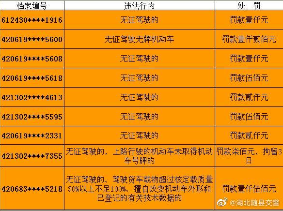 为进一步提升广大群众交通安全意识,切实做好道路交通事故预防“减量控大”,强化整治力度,有效震慑酒驾、醉驾、超载、无证驾驶等交通违法行为,现对随县9月份交通违法行为予以曝光,以此警示广大驾驶员自觉遵守交通安全法规。