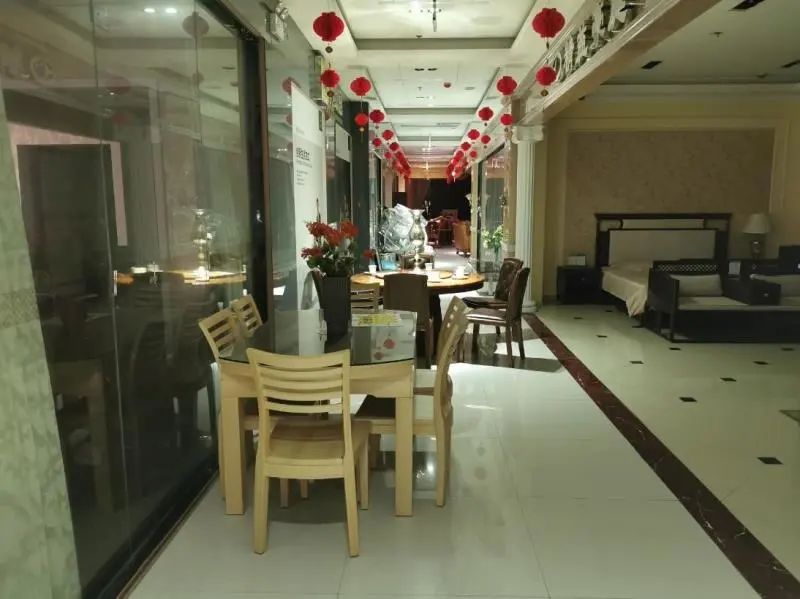 存在问题:1、一楼大厅一具室内消火栓被遮挡;2、厨房内抽油烟机未及时清理;3、一楼大厅吊顶采用大量可燃材料装饰。