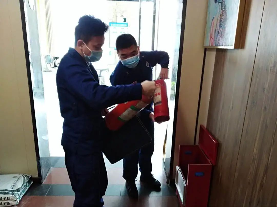 存在问题:1、灭火器压力不足;2、应急照明灯损坏。