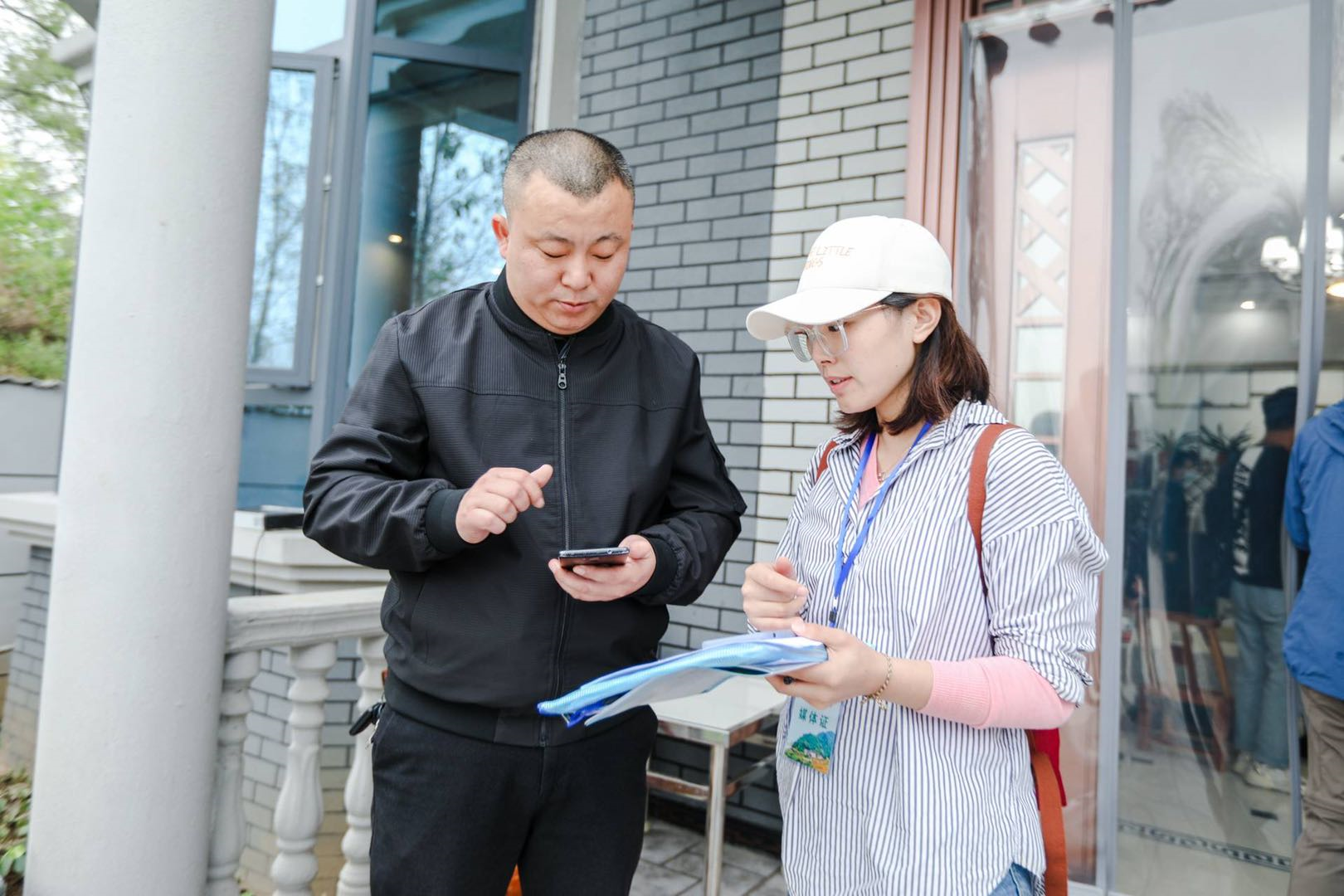 记者们在龙泉村村主任陈进的带领下首先来到聚会一家农家乐,老板董加友以前在外地务工,看着家乡的旅游业发展的不错,于是返乡创业办起了农家乐,今年五一开业迎客,生意还不错,董家友说在家乡办农家乐不仅可以照顾老人和小孩,而且收入也比在外务工高了不少。