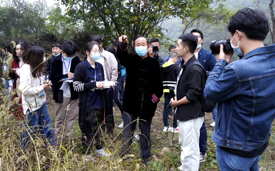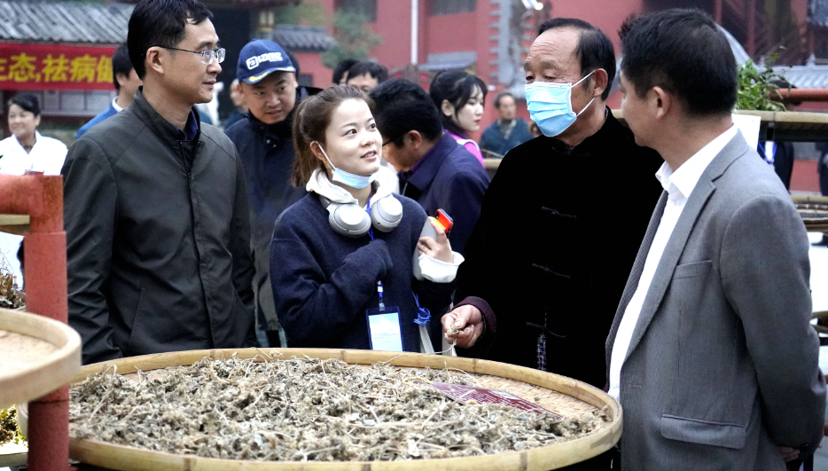 抱朴谷养生产业园是国家3A级旅游景区和国家森林康养基地,建设有中药材示范基地、中药材标本馆、中医馆、养生堂,成为集中药材种植、开发和应用为一体的中医药康养旅游示范园区。记者们首先来到了中药材示范基地,听园区负责人杜天奇介绍该基地的野生和种植中药材的种类、数量和规模。