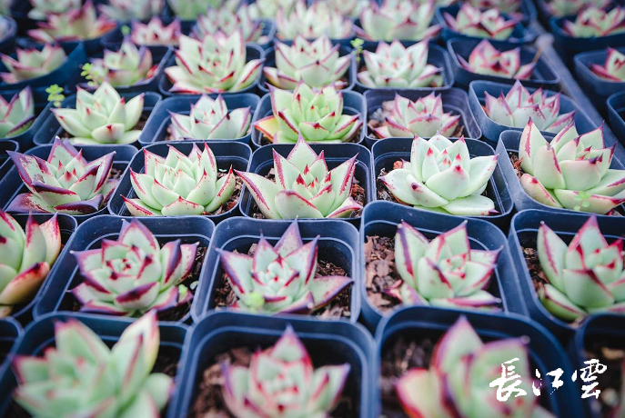 10月13日,在随州市举行的融媒体行活动中,媒体一行走进广水市长岭镇泉水村传奇园艺多肉植物种植基地,50多岁的村民郭家芝对记者欣喜地说起了这两年村里的变化,顺带也夸起了他们村的第一书记郝旭东。在基地,只见五彩斑斓的多肉植物竞相生长,万紫千红的唐印,星罗棋布的十字锦,嘟嘟绽放的雪莲,肉萌肉萌的雨燕应有尽有,圆嘟嘟的身体、小巧的外形、丰富的色彩,让人爱不释手。一盆盆生长茂盛的多肉植物正被工人们装箱打包,发往全国各地。在基地一个角落,一袋袋栽培多肉植物的纤状土壤引起了记者的好奇,据基地工作人员介绍,这些土壤都是从北欧国家直接进口的,是培育多肉植物必不可少的特色土壤。这也显示着,这个鄂北小村庄,如今已是“买世界卖全球”了。