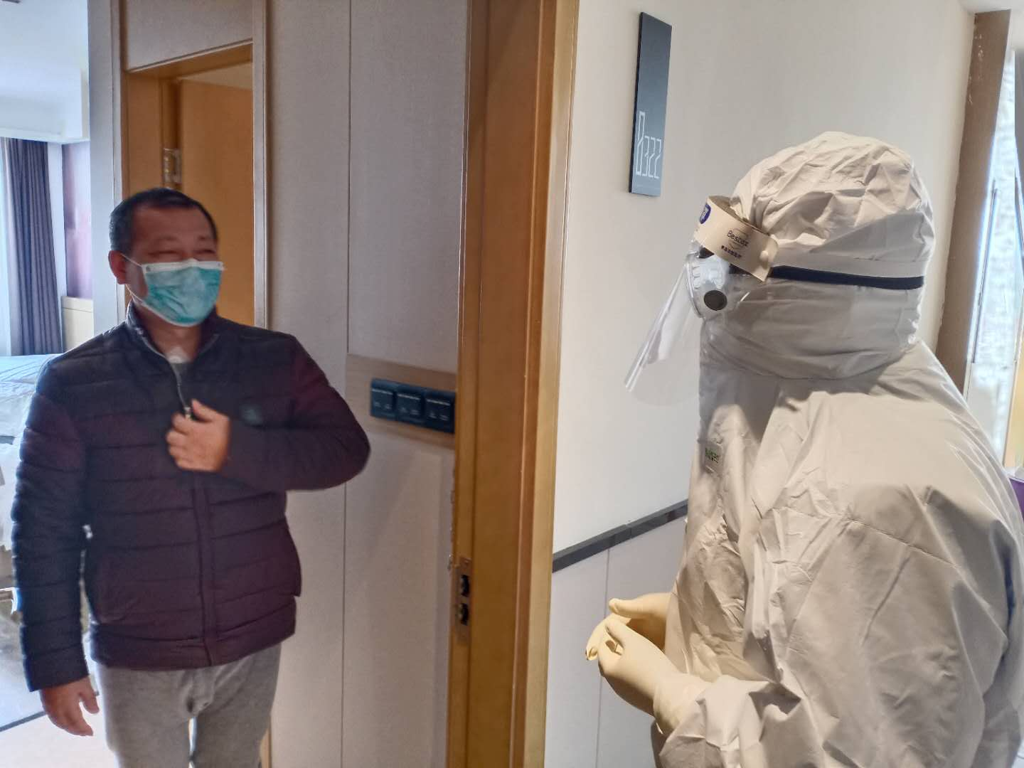 3月14日吴振华院长到发热点督导疫情防控(右一)