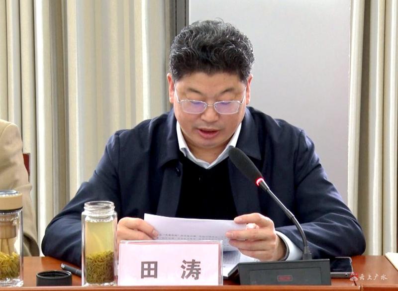 广水市长田涛传达了随州市委书记钱远坤在全市领导干部大会和来广水调研时的讲话精神。