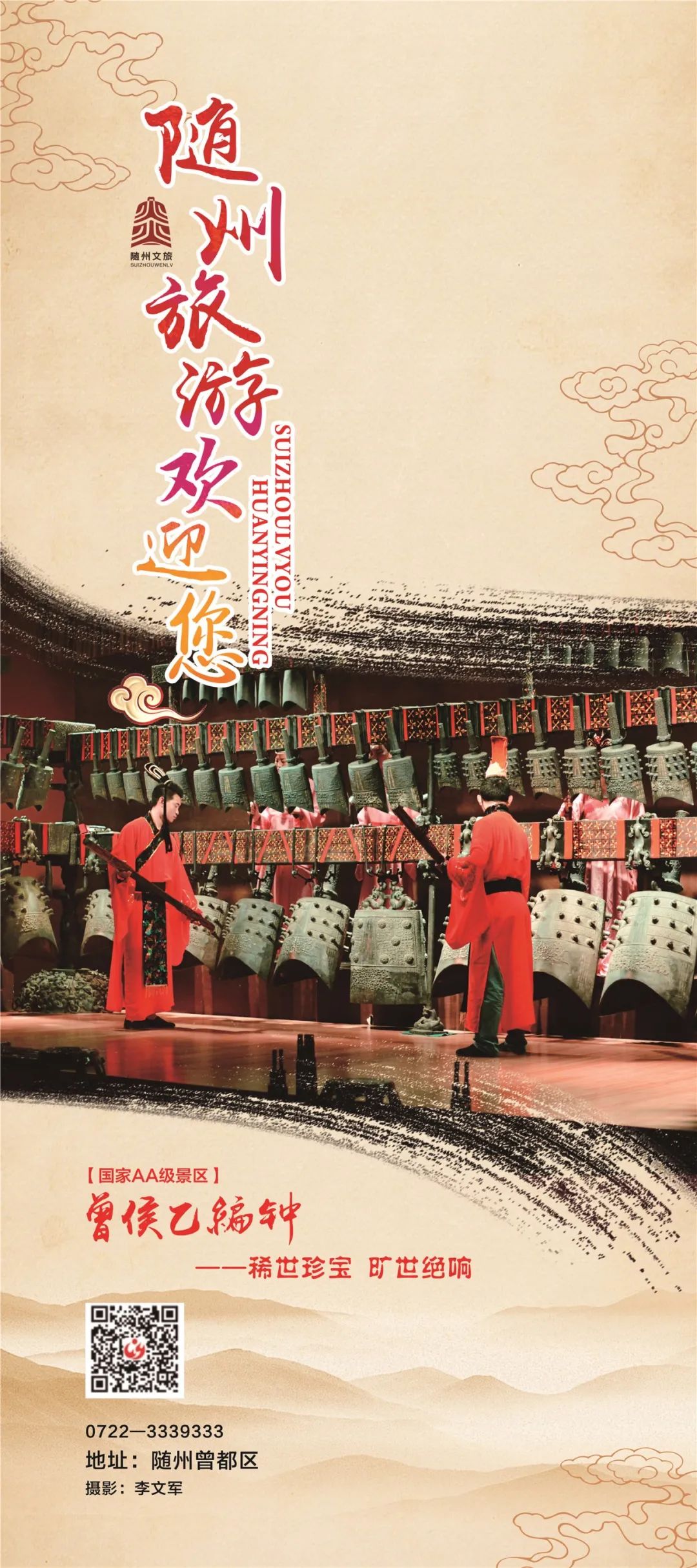 由随州市文化和旅游局主办的“惠游湖北 乐动江城”随州秋季旅游产品推广暨编钟乐舞快闪巡演活动明天将在武汉音乐学院和光谷步行街米兰春天广场进行。