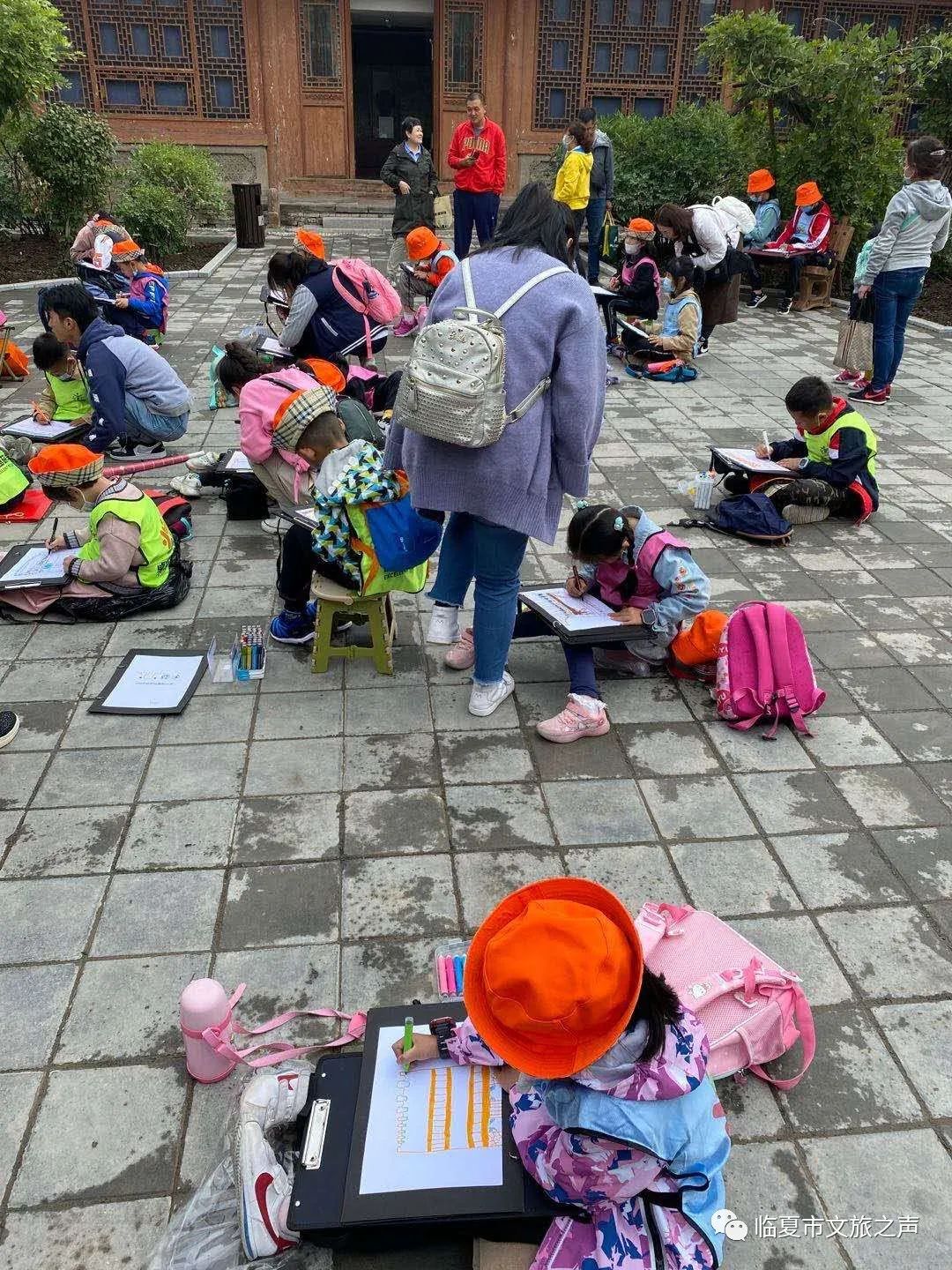 参观过程中,每个孩子都在认认真真的听讲解员讲述东公馆的历史,还有各式各样临夏传统精美砖雕、木雕以及它们所蕴含的寓意。参观完东公馆后,孩子们在讲解员的带领下又参观了临夏市博物馆各展厅。一件件历史悠久的铜器、瓷器、玉器、古钱币,还有一件件精美的民俗用品、生动活泼的河州泥塑作品,让穿梭在其中的同学们徜徉在历史的长河中,真正体验到了“一朝步入展馆,一日梦回千年”。有一部分孩子甚至还在记笔记,还有一批小朋友在东公馆正院院中完成老师布置的绘画作业,其乐融融,学习气氛非常浓郁。通过参观和体验,同学们被临夏厚重的历史文化所震撼,被精美的文物所吸引,同时体味到了古今的文化传承和现代的大美临夏,真正感受到了古河州独特的历史文化魅力。