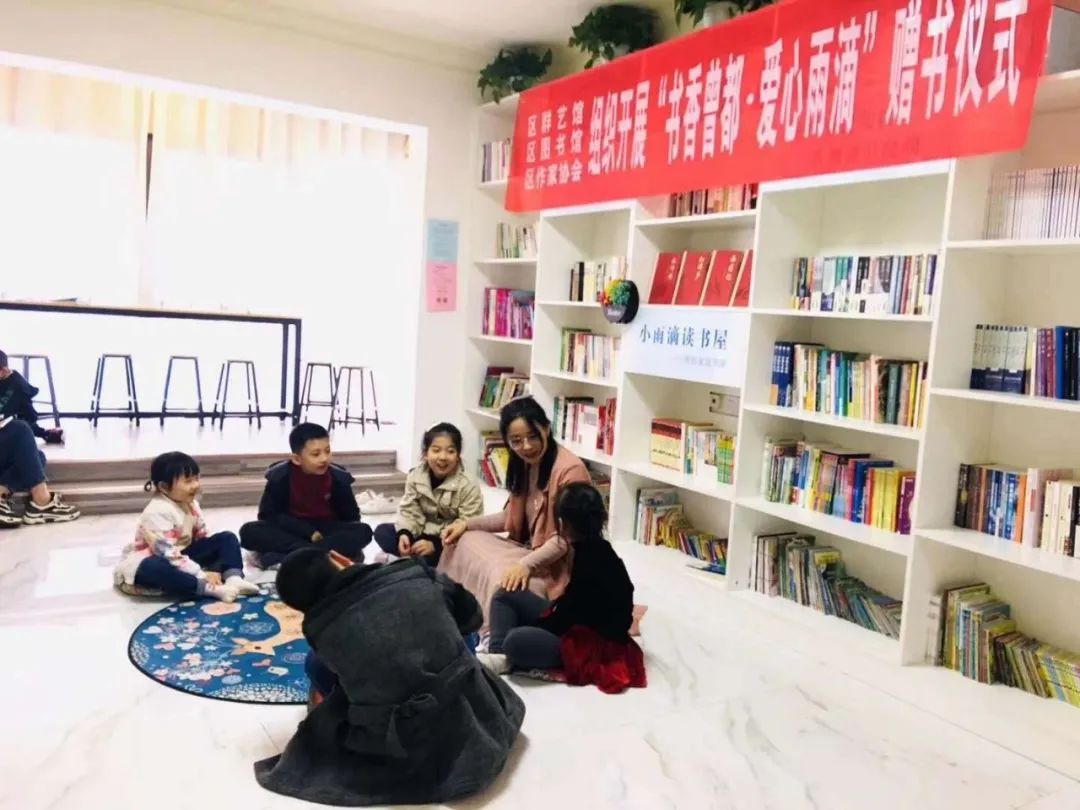 活动现场,区群艺馆、区图书馆向小雨滴读书屋赠送了适合小朋友阅读的书刊,区作家协会的作家们也纷纷把自己出版的书籍,赠送给小雨滴读书屋,并现场与小朋友们开展了读书分享会。通过浸润式阅读,陪伴式阅读,合理引导,激发孩子们的阅读兴趣,提升儿童们听、说、读、写的能力。