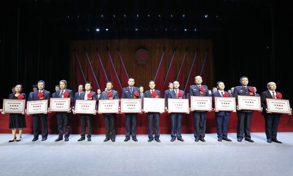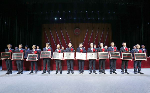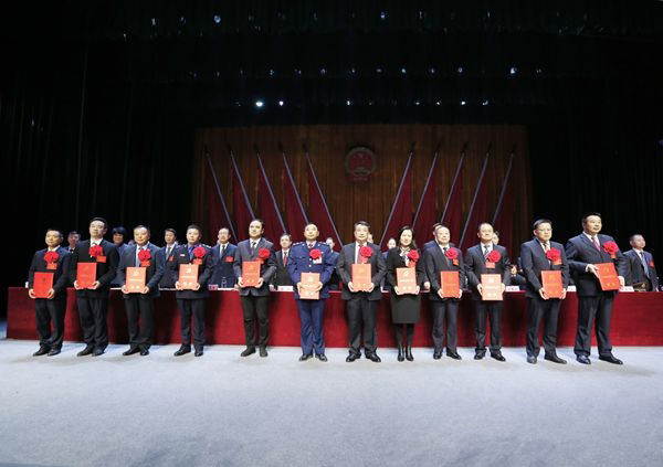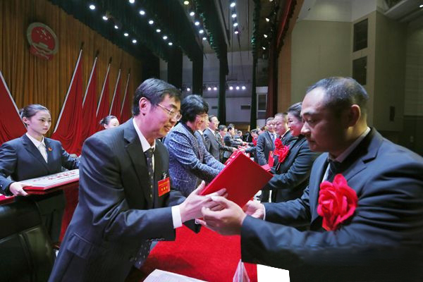 市领导为受表彰的先进个人、先进集体代表和优秀共产党员、先进基层党组织代表颁发奖牌和证书。
