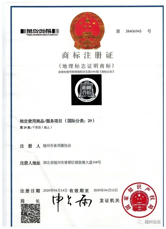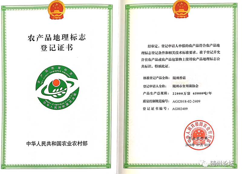 近日,由随州市农业农村局统一组织,随州市食用菌协会与23个香菇种植经销公司(合作社)签订了免费使用中华人民共和国农产品地理标志和“随州香菇”地理标志证明商标使用许可协议,有效期3年。