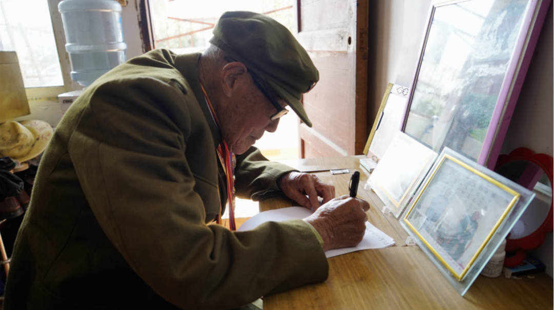 92岁高龄的他精神矍铄、思路清晰,提起曾经赴朝鲜的时间、部队番号、坚守的阵地等情况,他都能脱口而出:“当时动员赴朝鲜抗美援朝,我主动报名,补充到了中国人民志愿军20军59师176团,1951年冬天特别冷,踩着冰跨过鸭绿江到朝鲜,第二年夏天在阵地上坚守了两个多月,最后因负伤才下阵地的。”