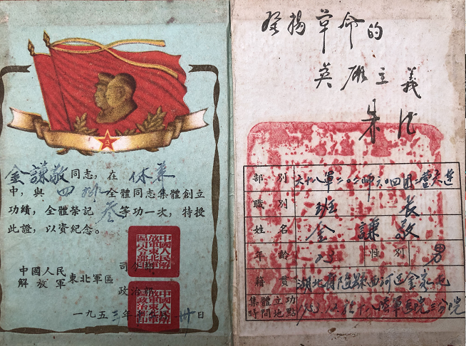 眼前这位哼唱着《中国人民志愿军战歌》的就是金歉敬老人,虽然今年已经91岁高龄,但唱起战歌回忆起抗美援朝的过往依旧声音洪亮。金歉敬1930年出生于淅河镇金屯村,1949年刚满19岁的他前往孝感参军,1950年编入68军202师604团并担任班长赶赴朝鲜作战,他还聆听了彭德怀司令员的战前动员。