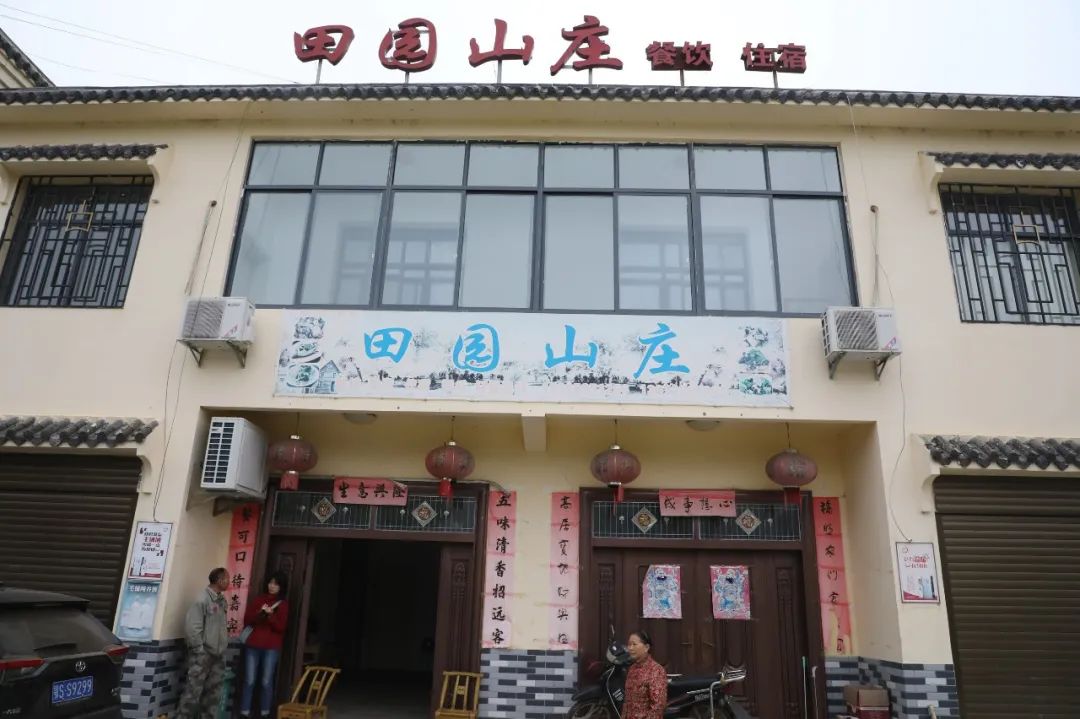 在龚店村五组,有一排十多户的农家小院,白墙灰瓦,中间一栋房顶挂着“田园山庄”的牌子格外显眼。小院子里,老板代防修在打扫卫生,老板娘王菊清正在忙碌着烧开水、择青菜。